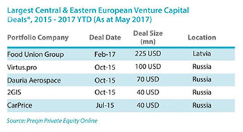 Russia hosted four out of the five largest VC deals in the Central and Eastern European region, while Poland is home to the largest PE deals.